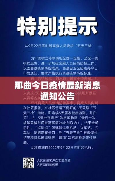 关于那曲地区的疫情发展备受关注,随着全球疫情形势的不断变化,那曲市也加强了疫情防控措施,以保障广大市民的健康安全,本文将从多个方面介绍那曲今日疫情最新通知,以便大家更好地了解当地疫情状况。
