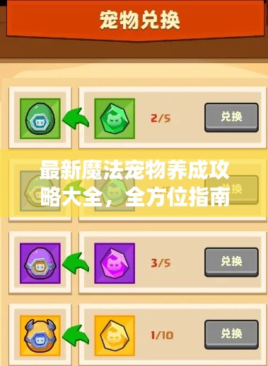 在这个充满神秘与奇幻的世界里,魔法宠物已成为许多冒险者的得力助手,它们不仅拥有强大的魔法力量,还能陪伴主人共度无数精彩瞬间,本文将为大家带来一份详尽的魔法宠物攻略大全,助你更好地了解、培养和管理你的魔法宠物,成为真正的宠物大师!