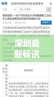 随着深圳市的快速发展,各类项目招标信息日益频繁,本文将为您带来深圳今日标讯的最新消息,让您全面了解深圳市的招标动态。