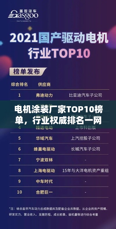 随着工业化的快速发展,电机涂装行业也得到了长足的发展,在众多电机涂装厂家中,哪些厂家能够脱颖而出,成为行业内的佼佼者呢?本文将对电机涂装厂家排名前十名进行介绍,以供参考。