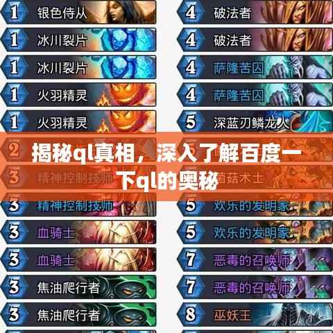 “百度一下ql”指在百度搜索引擎中输入关键词“ql”,通过搜索获取相关信息,这里的“ql”可能是一个特定的词汇、缩写或者与某个领域相关的术语,用户通过百度搜索“ql”,可能是想了解其含义、用途,或是寻找与之相关的资源、信息。