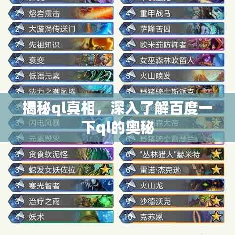 3、生活应用:在日常生活中,“ql”可能代表某种流行语或网络用语,通过百度搜索可以了解其具体含义及用法。