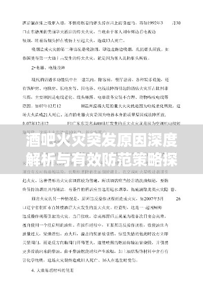 近年来,酒吧突发大火事件屡见不鲜,给人们的生命财产安全带来严重威胁,针对这一现象,本文将从多个角度深入分析酒吧突发大火的原因,并提出相应的防范策略,以期减少类似事件的发生。