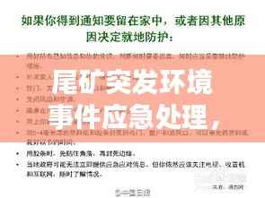 尾矿是采矿过程中产生的废弃物,由于其含有大量重金属和其他有害物质,若处理不当,易对环境造成污染,近年来,随着矿业活动的频繁,尾矿突发环境事件屡见不鲜,给生态环境和人民群众的生命财产安全带来严重威胁,建立尾矿突发环境事件应急机制,提高应急响应能力,成为当前环境保护工作的重要任务。
