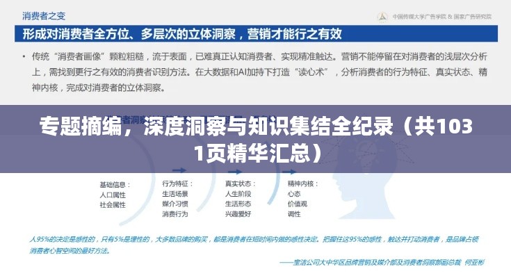 随着信息时代的到来,知识的获取变得日益便捷,而专题摘编作为知识传播的一种重要形式,越发受到人们的关注,专题摘编不仅能帮助读者快速了解某一领域的最新研究成果,还能为深入研究提供丰富的素材和参考,本次专题摘编共1031页,涵盖了多个领域的精华内容,值得一读。