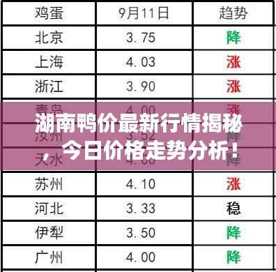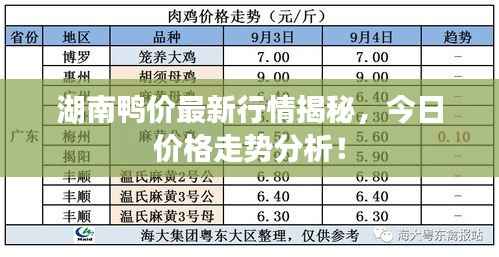 随着生活水平的提高,鸭肉作为重要的食品来源之一,在市场上占据着不可忽视的地位,湖南地区作为中国重要的养殖业发达地区之一,其鸭产品的价格动态一直备受关注,本文将围绕“今日鸭价最新价湖南”这一主题,对湖南地区的鸭价行情进行综合分析。