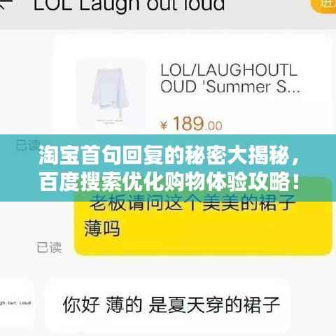 随着互联网的普及,淘宝购物已成为人们日常生活中不可或缺的一部分,在购物过程中,如何快速获取商品信息、精准找到心仪的商品,成为了许多消费者关注的焦点,本文将结合关键词“百度一下淘宝首句回复”,探讨如何利用百度搜索优化淘宝购物体验,助你轻松实现购物目标。