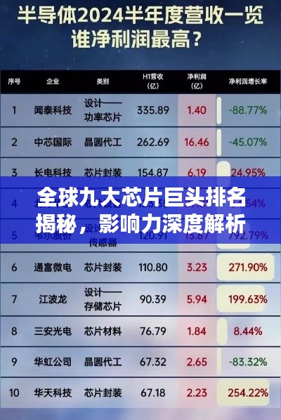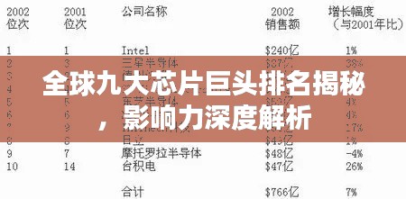 随着科技的飞速发展,芯片行业已成为全球关注的焦点,本文将为您详细介绍全球九大芯片巨头的排名及其影响力,其中涉及公司在全球芯片领域的地位及排名等信息。