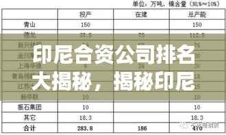 随着印尼经济的不断壮大,印尼合资公司也在逐渐崭露头角,根据最新的数据,目前排名靠前的印尼合资公司主要包括:XX公司、XX公司等,这些公司涉及的行业包括制造业、能源、金融、房地产等,它们通过与国内外企业的合作,不断壮大自身实力,成为印尼经济发展的重要支柱。