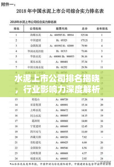 水泥行业是我国重要的基础设施产业之一,随着国家经济的持续发展和城市化建设的不断推进,水泥市场需求稳步增长,水泥上市公司作为行业的领军企业,其排名及行业影响力备受关注,本文将对水泥上市公司排名及其行业影响力进行深入剖析。