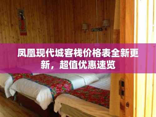 随着旅游业的蓬勃发展,越来越多的人选择到凤凰古城感受浓厚的民族文化氛围,凤凰现代城作为凤凰古城的重要组成部分,吸引了众多游客的目光,本文将为您详细介绍凤凰现代城客栈的最新价格表,帮助您做好行程预算。