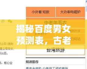 随着时代的发展,科技的进步,人们对于生男生女的预测已不再过分迷信,在一些地方,古老的习俗和传说仍然流传着一种名为“百度一下生男生女表”的预测方法,我们就来一起探索这个充满神秘色彩的预测表。