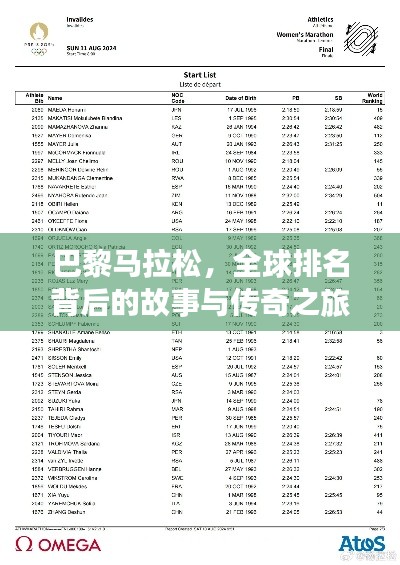 当我们谈论“巴黎马拉松排名世界第几”时,其实背后隐藏着的是一场世界级赛事的辉煌历程、激烈的竞争以及令人瞩目的成就,巴黎马拉松作为城市马拉松赛道中的佼佼者,每年都吸引着全球最优秀的长跑选手前来挑战自我,创造历史。