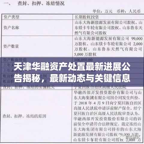 经过近期的调查和了解,我们获得了一些关于天津华融资产处置公告的最新动态。