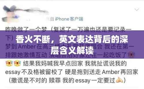 "香火不断"的英文表达不仅仅是语言翻译的问题,更是文化理解和传承的问题,在跨文化交流中,我们需要准确理解并尊重不同文化的象征意义,以便更好地进行交流和沟通,希望通过本文的探讨,读者能够更好地理解"香火不断"的深层含义,并在实际交流中找到合适的英文表达。