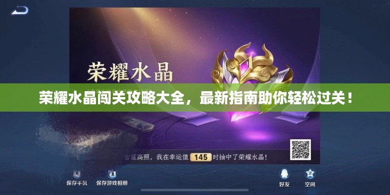 随着游戏版本的更新,荣耀水晶闯关的玩家们需要与时俱进,掌握最新的攻略和策略,本文将为你提供一份详尽的荣耀水晶闯关攻略,帮助你轻松应对各种挑战,获取丰厚的奖励。