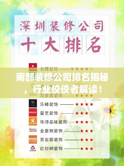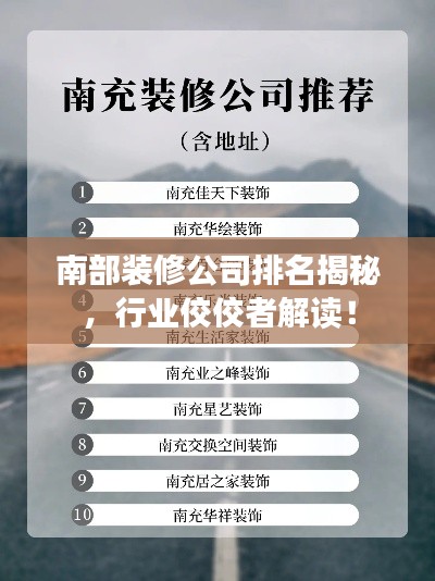 随着城市化进程的加速,装修行业日益繁荣,南部地区的装修公司如雨后春笋般涌现,对于需要装修服务的消费者来说,选择一家合适的装修公司至关重要,本文将为您解读南部本地装修公司排名,帮助您更好地了解行业内的佼佼者。