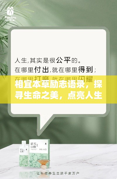 相宜本草励志语录,不仅是一句句激励人心的语句,更是一种生活的智慧,它告诉我们,人生就像草木一样,需要阳光、水分和养分,才能茁壮成长,我们要像相宜本草一样,适应环境,和谐共生,发挥自己的潜力,实现人生的价值。