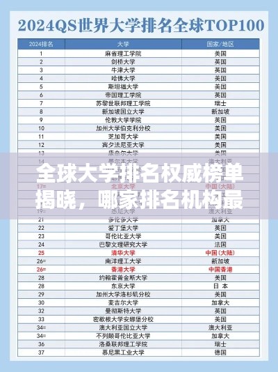随着全球化的推进,越来越多的人选择出国留学,而选择合适的大学成为众多学子关注的焦点,在众多大学中,如何了解大学的综合实力和排名情况呢?这就需要参考权威的世界大学排名,本文将介绍目前全球最具权威性的几家世界大学排名机构及其特点。