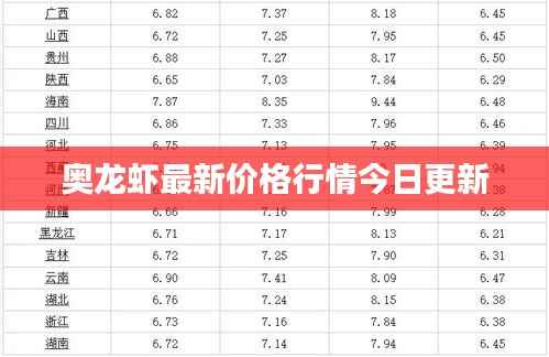 随着人们对美食的追求日益升级,各种珍稀海鲜也备受瞩目,奥龙虾因其独特的口感和营养价值而备受青睐,本文将为您带来奥龙虾今日的最新价格及市场行情。