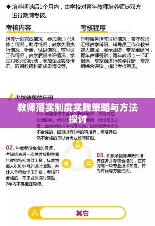 教师如何落实制度是一个值得深入研究的课题,在实践中,教师需要深入理解制度内涵,制定具体落实计划,提高自身素质,与学生沟通加强引导,注重过程管理强化监督,与同事协作共同推进,及时总结反思不断完善,只有这样,教师才能有效落实制度,为教育教学工作的顺利进行和学生的全面发展提供有力保障。