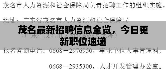 随着茂名市经济的蓬勃发展,各类行业的人才需求也日益增长,本文将为您呈现今日茂名最新的招聘信息,帮助您了解当前就业市场的动态,以便做出明智的职业选择。
