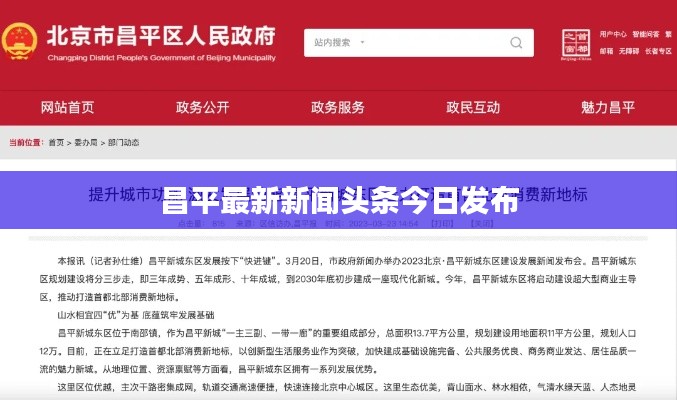 随着信息技术的快速发展,新闻头条已经成为了人们获取信息的重要途径,作为北京市的一个重要区域,昌平的新闻头条今天吸引了众多市民的关注,本文将为您梳理昌平新闻头条今天的要闻,带您了解这片热土上的新鲜事。