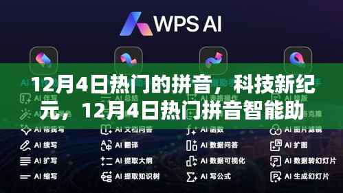 在这个智能新时代,“热门拼音”智能助手将成为我们生活的好帮手,让我们一起拥抱科技,享受科技带来的美好生活!12月4日,让我们一起见证这一刻!