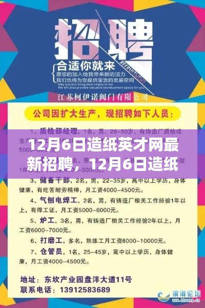 随着时代的发展,造纸行业正迎来前所未有的发展机遇,在这个变革的时代,人才成为企业发展的重要驱动力,正值12月6日,造纸英才网发布了最新的招聘动态,对于求职者来说,这无疑是一场人才盛宴,本文将围绕这一主题,带您一探究竟,解读行业招聘的最新趋势,为您的求职之路提供有力支持。