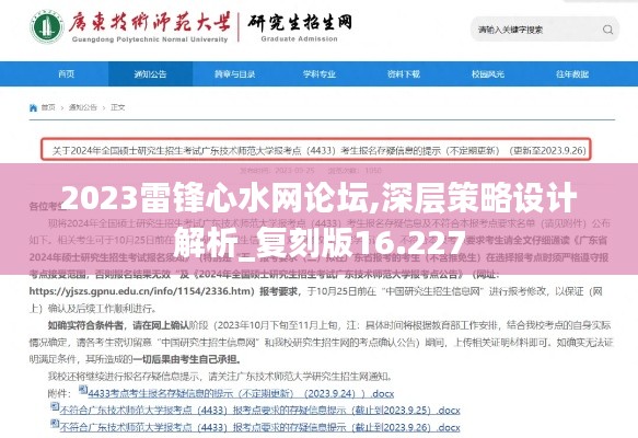 <p> 在充满变革与创新的2023年,雷锋精神依然熠熠生辉,成为激励人们向善向前的力量源泉,作为传播雷锋精神的重要网络舞台,雷锋心水网论坛通过丰富多彩的分享和讨论,将雷锋精神的光芒洒向每一个角落,本文将深入探讨论坛如何巧妙复刻历史上的深层策略,特别是16.227版本,并解析其深远意义。</p>