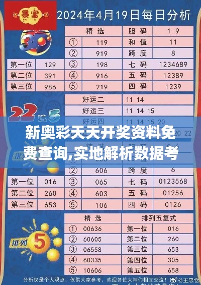 在彩票市场中,新奥彩作为引人注目的一种类型,每日吸引着众多彩民投入关注和资金。对于广大彩民来说,拥有实时、准确的开奖资料查询服务显得尤为重要。本文的目的就是为彩民们介绍一个功能强大、免费的查询平台,并且提供实地解析数据考察的粉丝版3.280平台,帮助大家更好地理解和把握开奖动态,以期获得更多中奖机会。