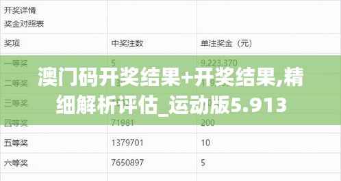 澳门特别行政区作为国际知名的旅游和娱乐胜地,其博彩业是该地区重要的支柱产业之一。本次发布的政策文件将详细解析“澳门码开奖结果”,并就其提供精细评估,《运动版5.913》版本的彩票开奖结果对于澳门博彩业的发展意义深远,我们将从多个层面进行深入探讨和评估。