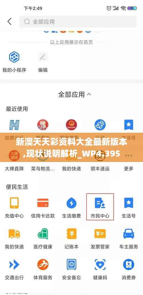 澳门特别行政区在特首的坚强领导下,积极推动彩票法制的完善、市场秩序的规范、发展战略的优化,澳门彩票行业有望进入新的起飞期。“新澳天天彩资料大全最新版本,现状说明解析_WP4.395”将为澳门彩票市场未来持续健康发展提供政策参考和动力支持,澳门彩票市场必将不断演变、迸发活力,正朝更加规范化、专业化、数字化的路径大步迈进,澳门彩票市场未来可期,引人遐想。
