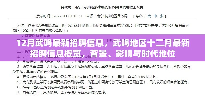 随着年末的临近,武鸣地区的就业市场迎来了新一轮的招聘热潮,在这个充满变革与机遇的时代,武鸣的招聘信息不仅反映了当地经济发展的脉络,更在某种程度上预示了未来职业发展的方向,本文将围绕武鸣地区十二月最新招聘信息展开详细叙述,从背景、重要事件、影响及其在特定领域或时代中的地委进行剖析,带您领略这片热土的就业新动向。