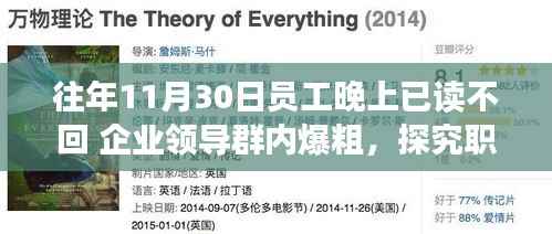 在每年的工作周期中,尤其是在接近年终或重要项目截止日期前,企业领导群内的信息交流往往更加频繁,往年11月30日晚间,许多企业中的员工已经阅读了群内消息却选择已读不回,这种现象不仅影响了信息的及时传递和工作的进展,更在一定程度上影响了团队的凝聚力和信任度,问题的关键在于如何解读这一现象背后的原因和影响。