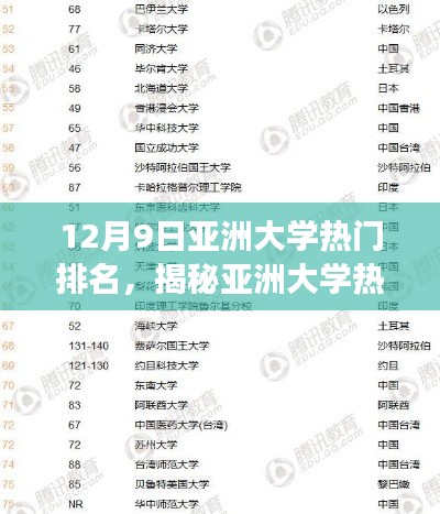 随着全球教育的快速发展,亚洲的高等教育也日渐受到关注,每年的大学排名都会引起广泛关注,尤其是在临近年末的时候,各大排名机构纷纷发布最新的排名榜单,本文将重点关注亚洲大学的热门排名情况,特别是针对三个核心要点进行深入解读,让我们一同走进这个充满机遇与挑战的教育领域,探寻亚洲大学的最新排名动态。