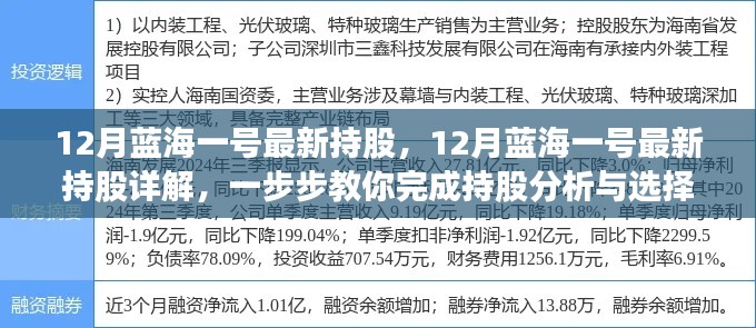 随着金融市场的日益繁荣,越来越多的投资者开始关注各类投资产品,其中股票投资因其高收益潜力备受瞩目,本文将针对12月蓝海一号最新持股情况进行分析,并引导读者如何完成持股分析任务,掌握相关技能,无论你是投资初学者还是进阶用户,都可以通过阅读本文获取宝贵的投资知识和实用技巧。