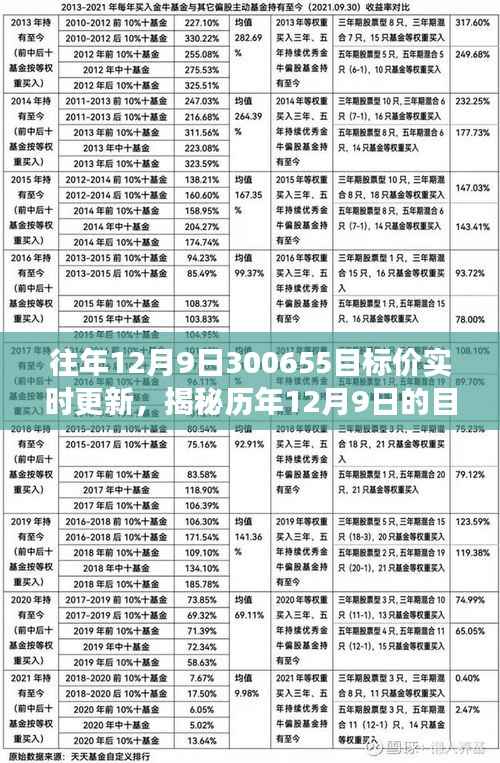 我们需要了解什么是“目标价”,目标价是市场分析师根据公司的财务数据、行业趋势、宏观经济环境等因素预测出的某支股票在一定时间内的合理价格区间,而关于历年12月9日的300655股票的目标价实时更新,则是金融市场中的一项重要动态,这不仅反映了市场对这支股票的预期变化,也为投资者提供了重要的决策依据。