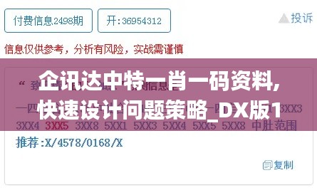 近期,澳门特别行政区政府通过积极推动"企讯达中特一肖一码资料"的项目,旨在提高政府服务效率和透明度,更好地服务于广大市民和企事业。针对当前的政策文件服务设计体系,我们应进一步创新,保持快速响应市场和社会的需求,以提高政策文件质量和服务效能。以下是关于快速设计问题策略的详细框架分析,以及相应的实施建议。