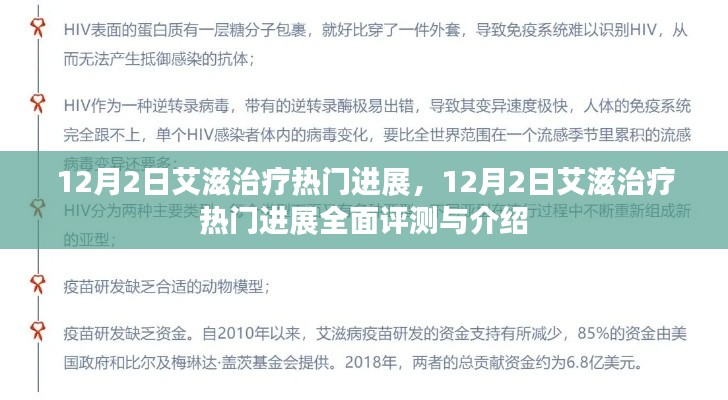 随着医学技术的不断进步,艾滋病的治疗领域也在持续取得突破,本文将详细介绍一款于12月2日备受关注的艾滋治疗产品,分析其特性、使用体验、与竞品的对比情况,以及优点与缺点,并对目标用户群体进行深入分析。