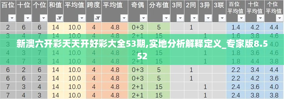 专家版8.552是本期新澳六开彩天天开好彩大全的特别推荐。该版本综合了历史数据分析结果和专家的投注建议,为彩民提供了一个明确的投注参考。例如,根据最近53期的统计数据,专家发现某些彩种的某些号码展现出较高的中奖潜力,因此在本版中,专家就该号码进行特别标注,并给出了具体的投注建议。
