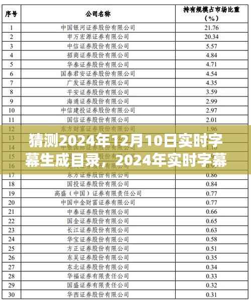 随着科技的飞速发展,实时字幕生成技术已成为信息时代的宠儿,特别是在数字化媒体日益繁荣的今天,实时字幕生成技术不仅为听力障碍者提供了便利,也为影视娱乐、在线直播等领域带来了革命性的变革,本文将围绕猜测的2024年12月10日实时字幕生成目录展开探讨,回顾其背景、重要事件、影响以及在特定领域或时代中的地位。