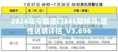 在激烈的全球化背景下,澳门特别行政区如同一叶扁舟,引领着区域经济的发展方向。作为澳门政府一个重要的政策发布和评估工具,“2024年今晚澳门345期特马,定性说明评估_V3.696”文件的公布,无疑体现了特区政府对于未来发展趋势的前瞻性和对于政策实施效果的自我审视。本文旨在对澳门特区政府发布的“2024年今晚澳门345期特马”政策文件定性说明评估的V3.696版进行深入分析和评估,以期对澳门未来宏观经济和社会发展方向提供深刻见解和参考。