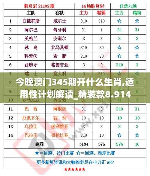 随着澳门彩票市场的不断发展和完善,澳门特别行政区为全球彩民提供了更多的娱乐和中奖机会,今晚澳门第345期彩票将揭晓新的中奖生肖,针对这一期的具体信息,澳门政府及相关彩票机构已经发布了详细的计划解读,为广大彩民提供更加精准的投注参考。