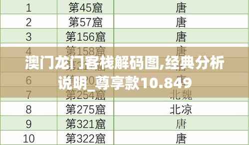 <p> “澳门龙门客栈”并非实体客栈,而是澳门文化的象征,通过解码图,我们可以更全面地了解澳门的文化、历史、政策等方面的信息。</p>