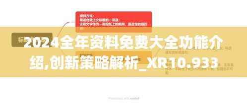 面对科技迅猛发展和全球化的挑战,发展一个全民覆盖的学习平台,提供高质量教育资源,已成为澳门政府的重要任务之一,为此,澳门政府推出《2024全年资料免费大全功能介绍,创新策略解析》,致力于实现全民教育和科技创新的目标。