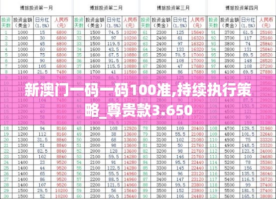 <p> “持续执行策略_尊贵款3.650”是“新澳门一码一码100准”政策下的具体执行策略,旨在确保政策的精准实施并取得预期效果,以下是其核心内容:</p>