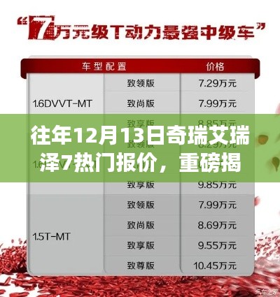 在往年的12月13日,奇瑞艾瑞泽7的热门报价主要集中在以下几个版本: