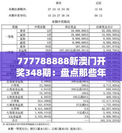 <p>澳门,以博彩业著称的特别行政区,其彩票系统引人关注,尤其是777788888新澳门开奖,更是成为彩民们热议的焦点,随着第348期的到来,众多彩民们翘首以盼,希望自己能成为大奖的得主,本文将带您了解这一期开奖的热点和背后的故事。</p>