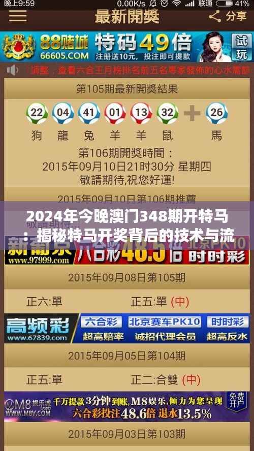 澳门特马,这个源自澳门土生土长的独特博彩文化,既是历史的遗存,也是现代澳门博彩业的重要组成部分。作为澳门博彩政策的重要组成部分,特马游戏承载着地区精神与经济支柱的双重身份。在“2024年今晚澳门348期开特马”的背景下,本文将详细揭秘特马开奖背后的技术与流程,为公众揭开这项传统文化背后的神秘面纱。